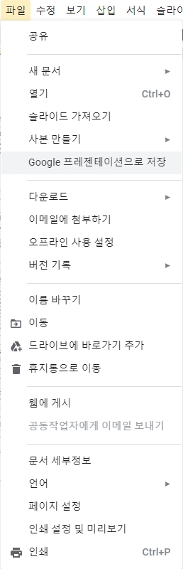 구글 프레젠테이션 형식으로 저장 방법